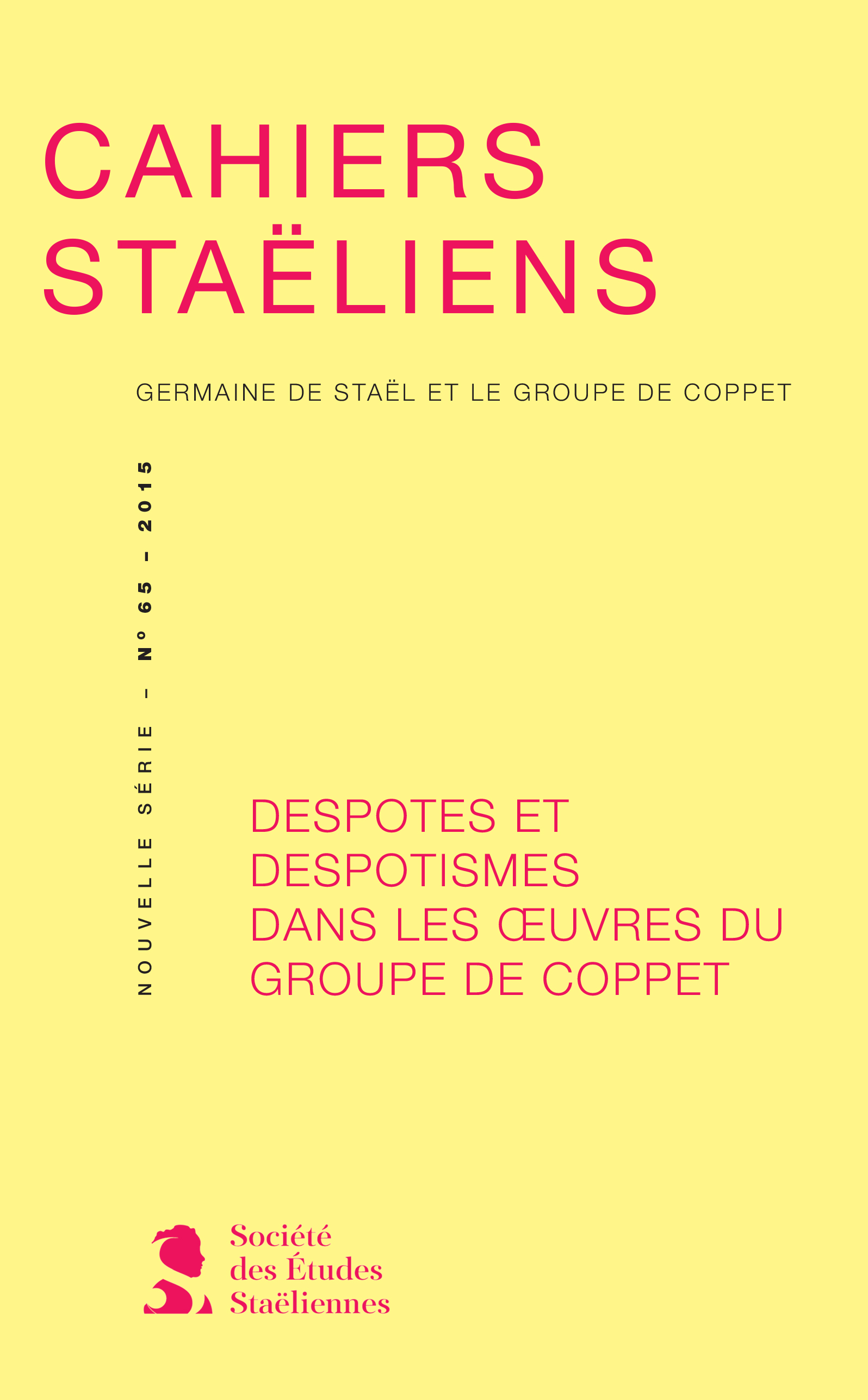 65 | 2015 : Despotes et despotismes dans les œuvres du Groupe de Coppet Couverture Cahiers Staëliens 65 Fichier original cahiers_staeliens_65_couv.jpg (image/jpeg – 683k)
